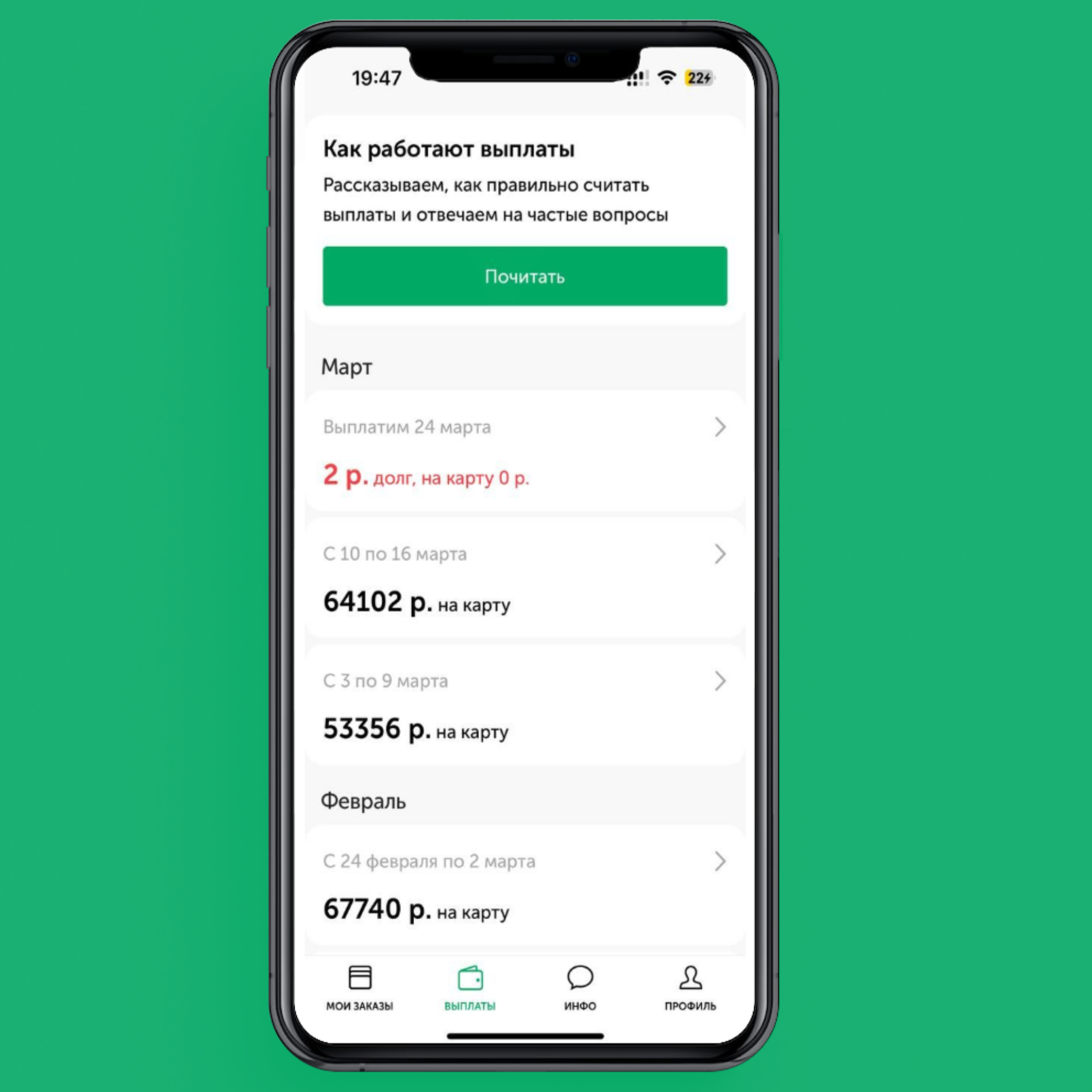 ❗️Если на заказе два клинера, то отображаемая выплата делится на два.