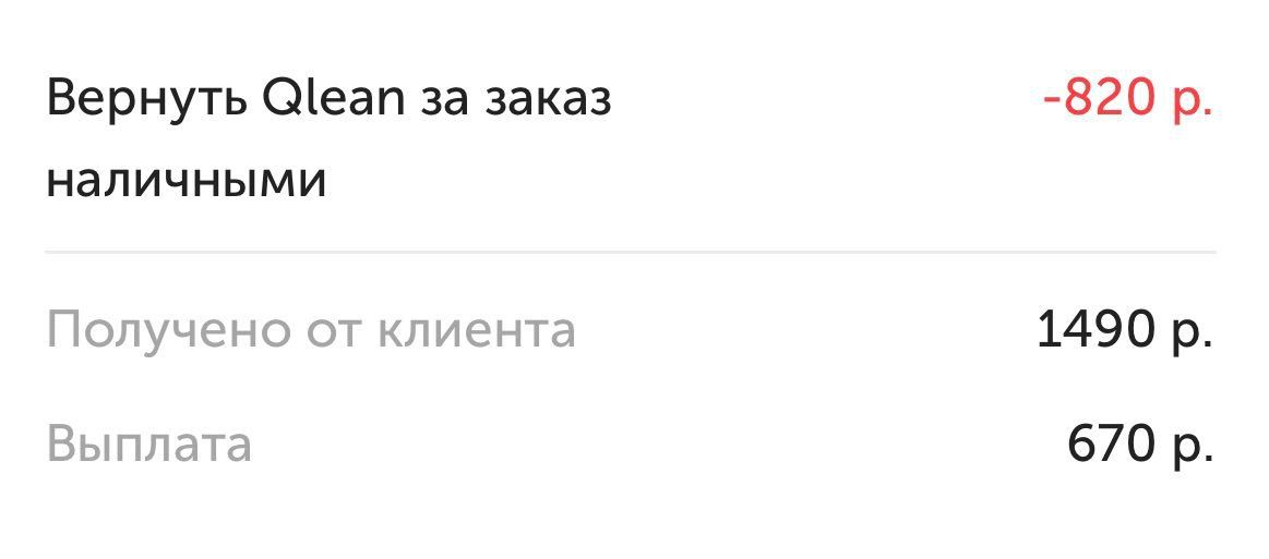 Вернуть Qlean за заказ наличными — если клиент оплачивает наличными, то часть этих денег — ваша и часть — комиссия Сервиса.