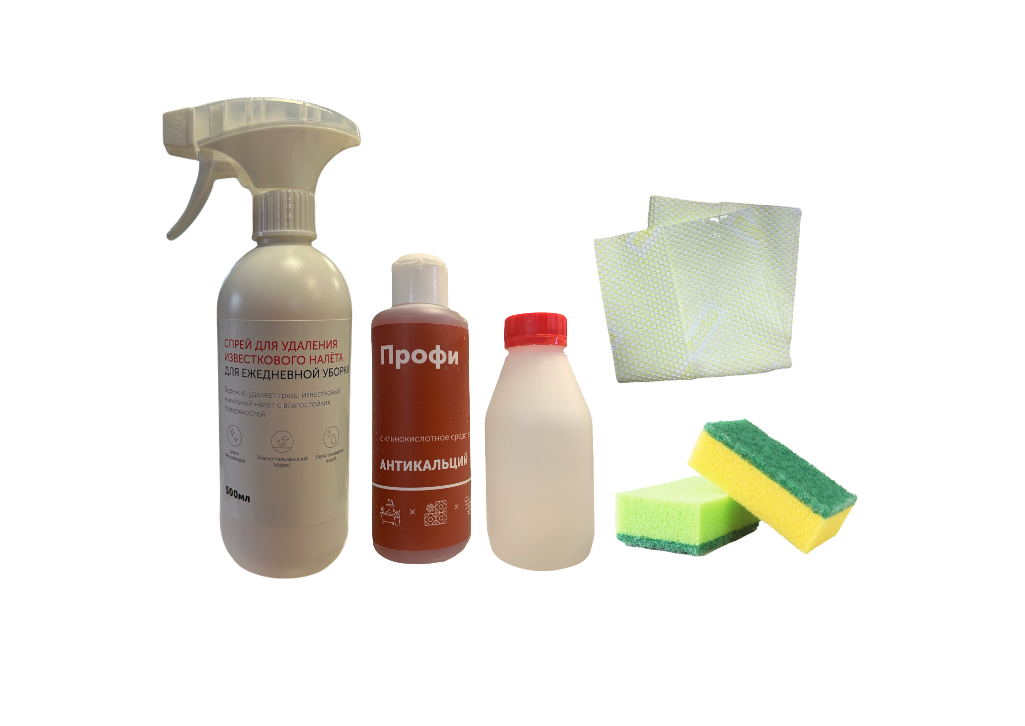 1. Нанесите "Антикальций Профи" на загрязненные поверхности: эмаль, фаянс, стекло, кафель.